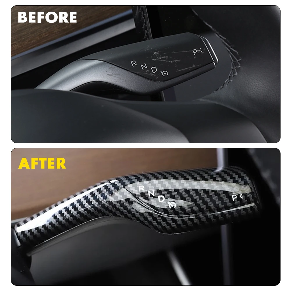 2PCS Car Steering Wheel Shift Protection Cover Trim For Tesla Model 3 Model Y ABS Column Carbon Fiber Shift Knob Sticker Decor - Купить с бесплатной доставкой