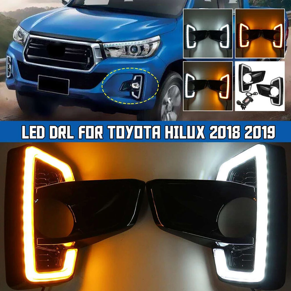 2PCS Dynamic LED Headlight For Toyota Hilux Rocco 2018 2019 Flowing Daytime Running Light with Turn Signal Fog Lamp White Yellow - Купить с бесплатной доставкой