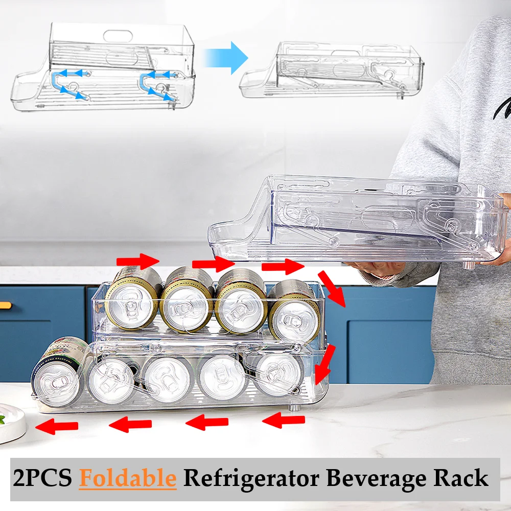 CMjJFwYorЗдесь вы сможете купить 2PCS Foldable Refrigerator Beverage Rack 2 Layer Automatic Rolling Plastic Beer Soda Shelf Can Storage Holder Kitchen Organizer с бесплатной доставкой до вашего почтового отделения.