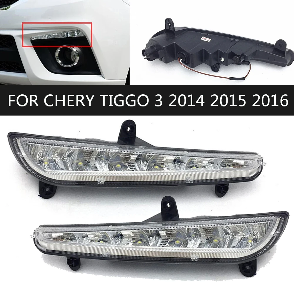 2PCS Front Bumper LED DRL Driving Daytime Running Light Daylight Fog Lamp For Chery Tiggo 3 2014 2015 2016 LEDCar Accessory - Купить с бесплатной доставкой
