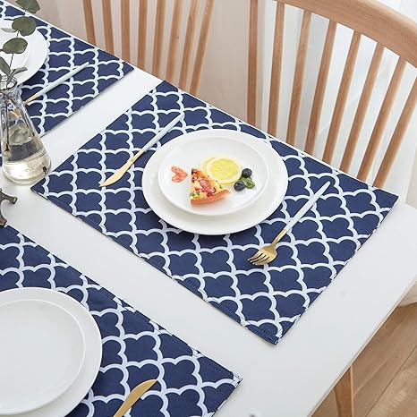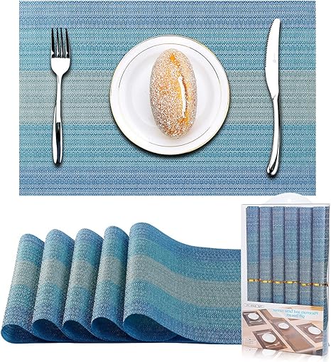 Extend the service life of the dining table . Classic & Modern Table Placemats Place Mat large size: 11 .8 inches x 17 .5 inches . All table mats are cut by professional machines, without rough edges . Stylish appearance, more durable, bring new vitality to your tablecloth . Multi-Purpose Decorative Placemat Very suitable for indoor or outdoor use .