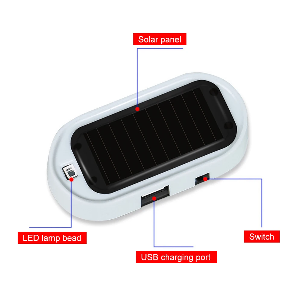 2PCS Solar Power Simulated Dummy Car Alarm Light LED Fake Warning Light Anti-Theft Warning Flashing Signal On/Off with USB Port - Купить с бесплатной доставкой