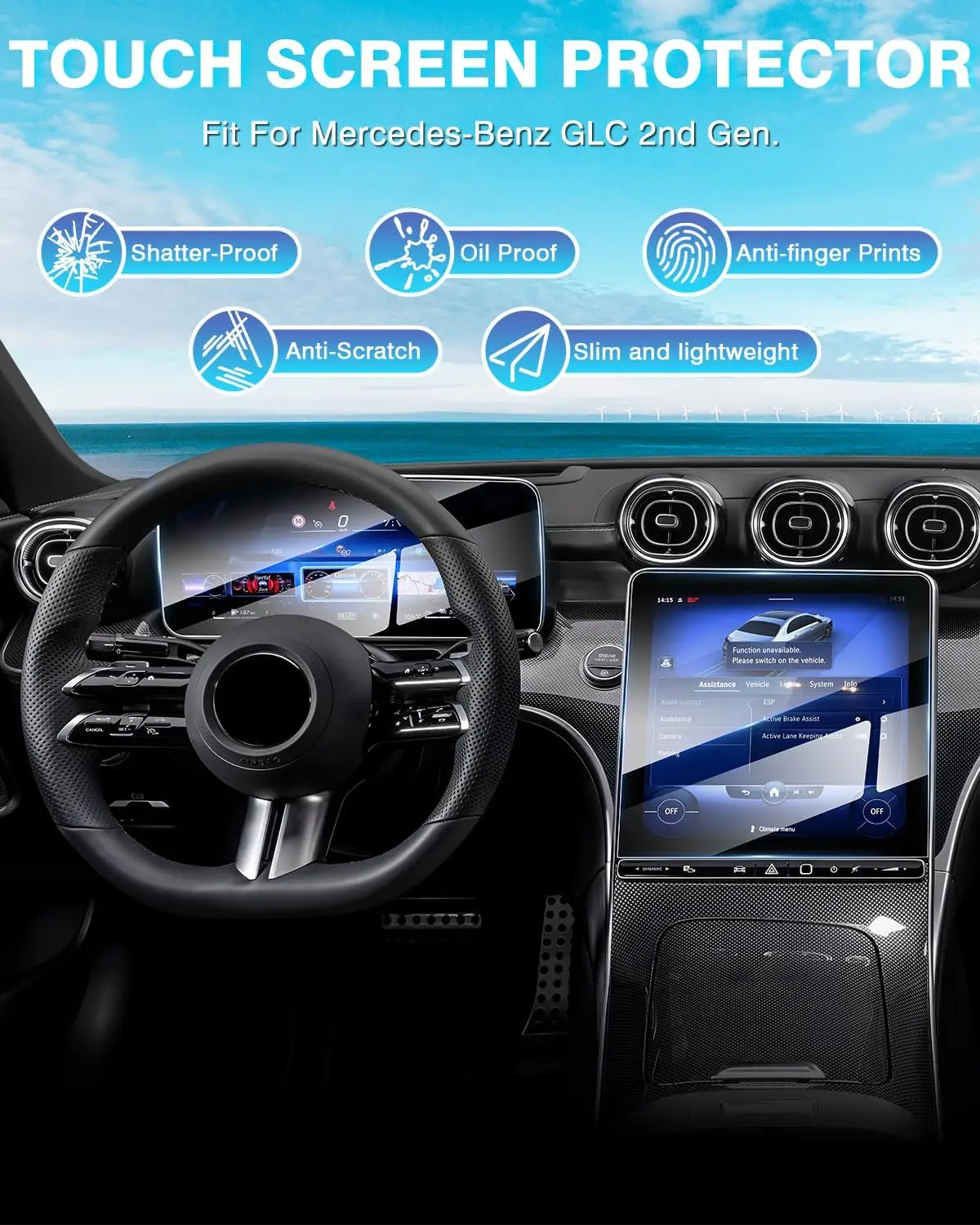 oBObBltrHere you can buy 2PCS Tempered Glass Screen Protector for Mercedes Benz GLC 300 2023 2024 11.9 Inch GPS Screen 12.3 Inch Instrument Cluster Scree with free delivery to your post office.