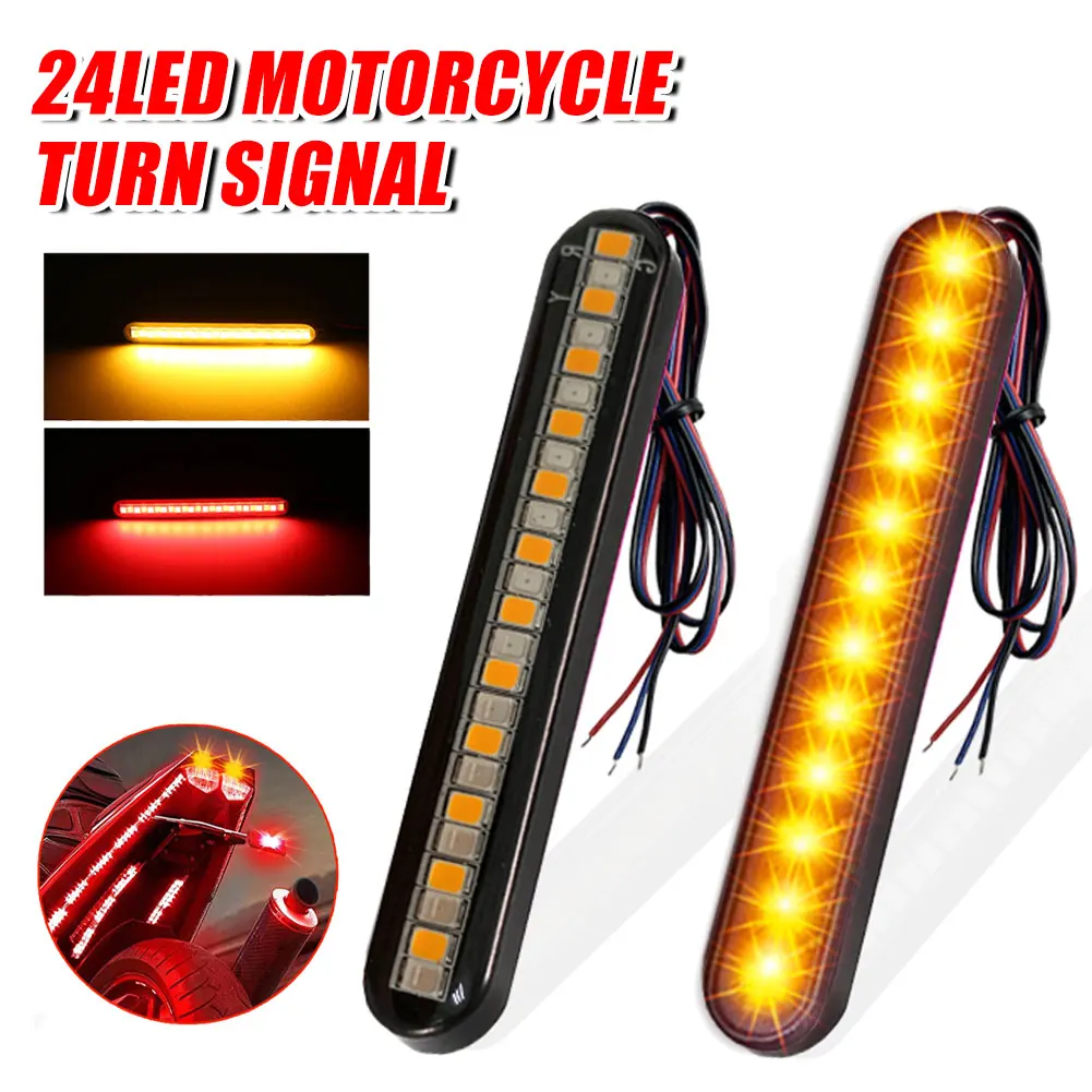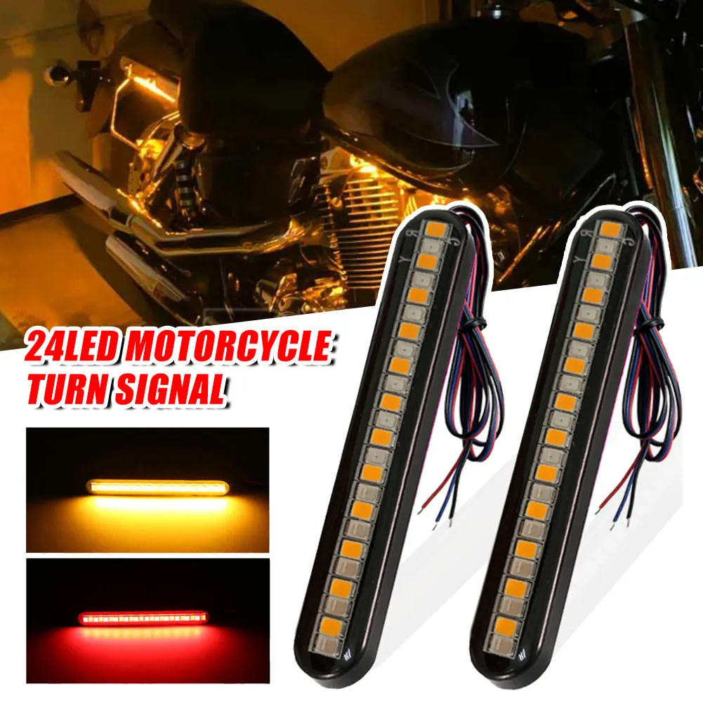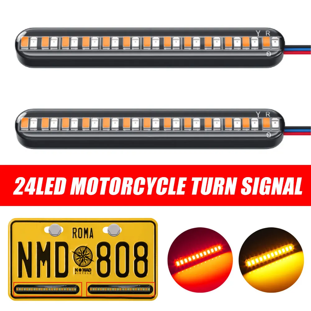 2Pcs 24LED Motorcycle Turn Signal 12V Mini Light Bar Red+Flowing Yellow Running Water Stop Light Brake Lamp License Plate Light - Купить с бесплатной доставкой