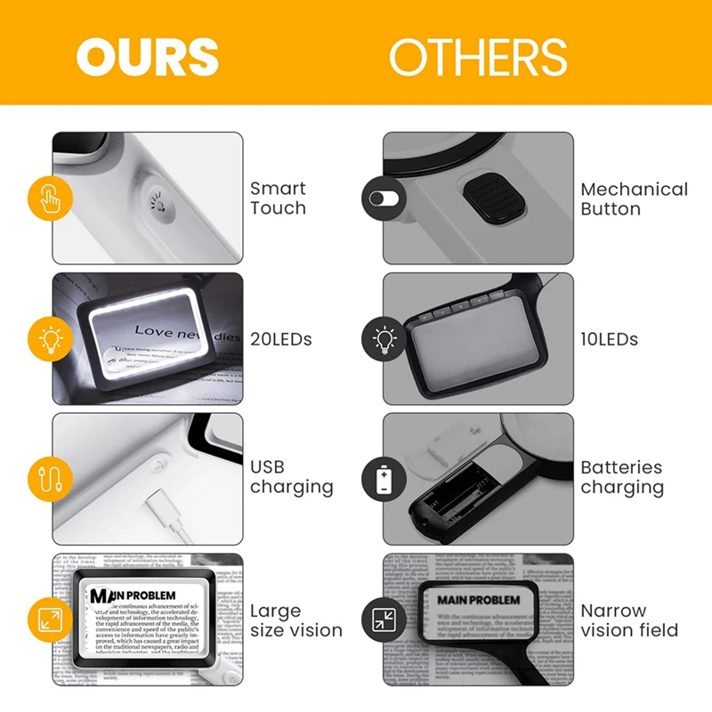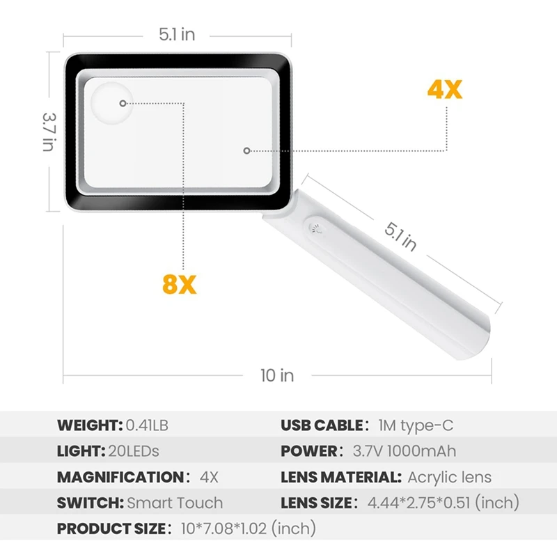 rmwwXPOYHere you can buy 2Pcs 4X Rechargeable Magnifying Glass With Light 20Leds, Handheld Rectangular Page Lighted Magnifier, 3 Brightness Modes with free delivery to your post office.