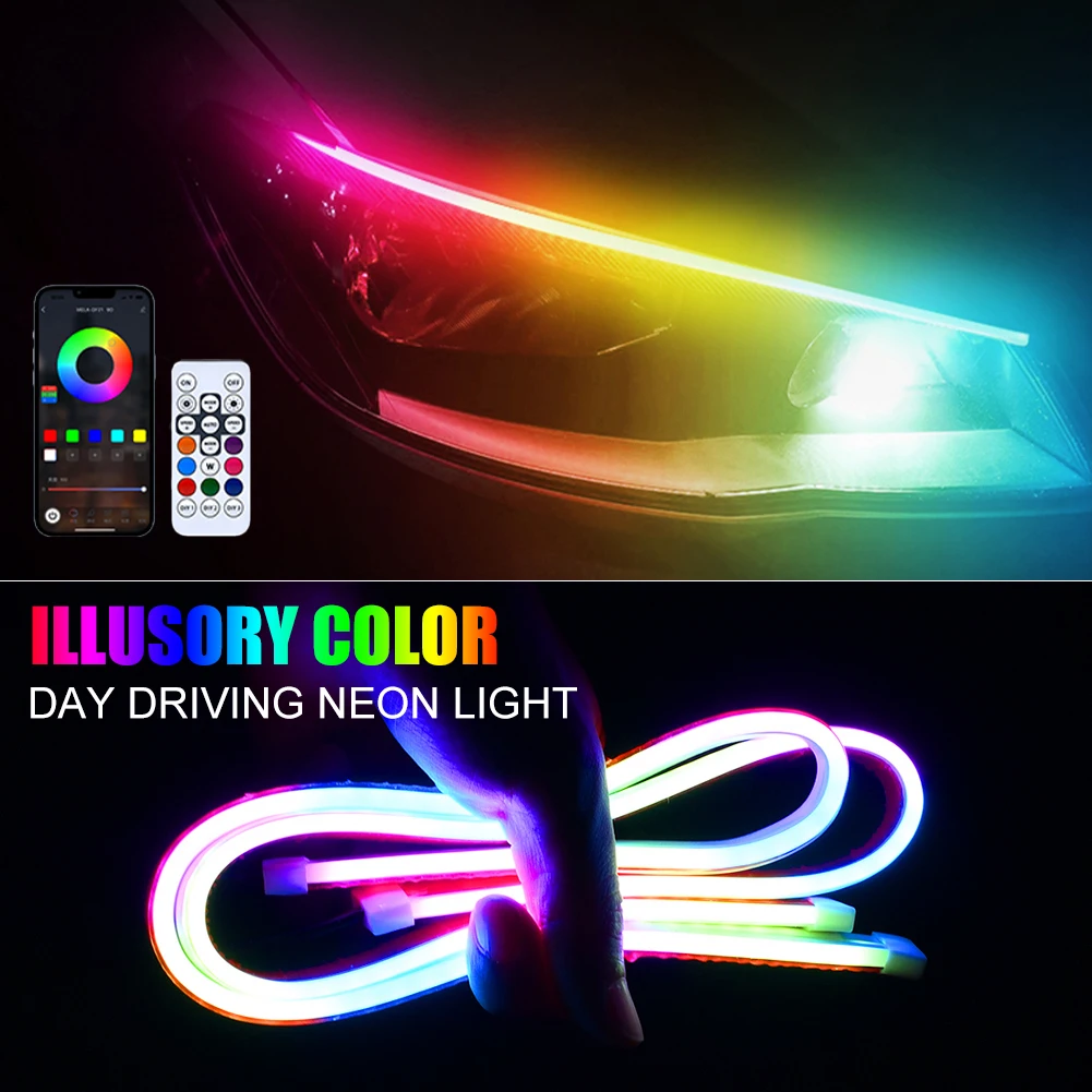 jgIKFhPvHere you can buy 2Pcs Car LED Neon Light DRL RGB Daytime Running Light APP&Remote Control Taillight Strip Colorful Flowing Turn Signal Waterproof with free delivery to your post office.