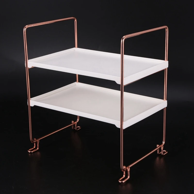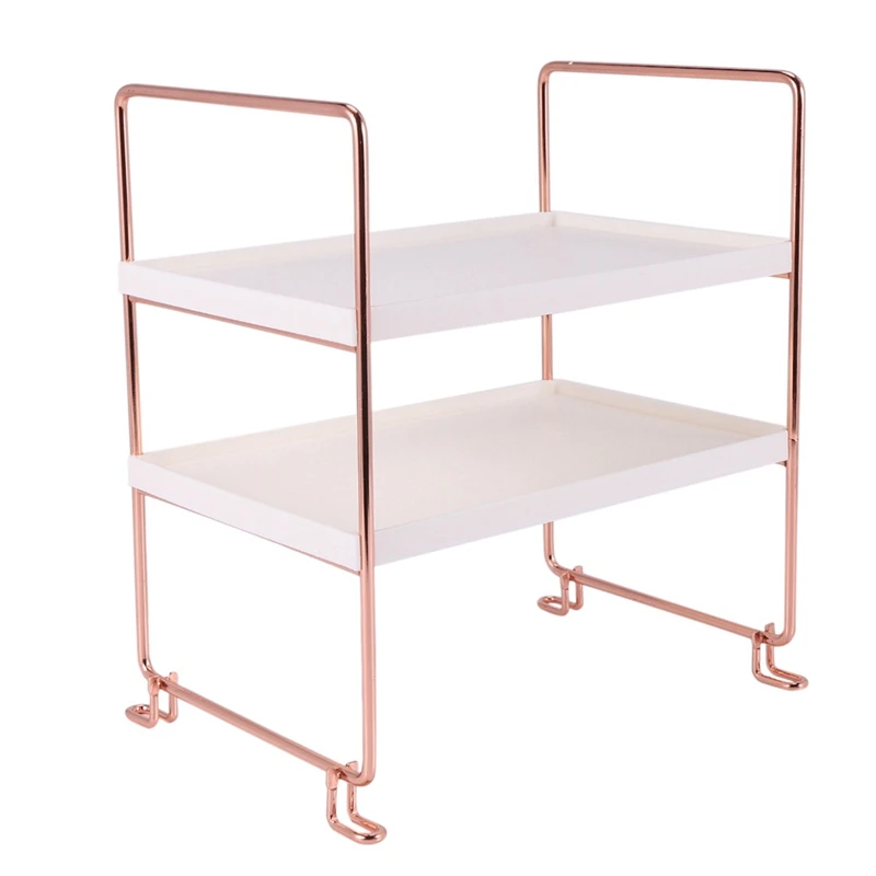 2X Desktop Storage Rack Rose Gold 2 Layers Bathroom Makeup Organizer Assembled Kitchen Seasoning Iron Storage Shelves - Купить с бесплатной доставкой