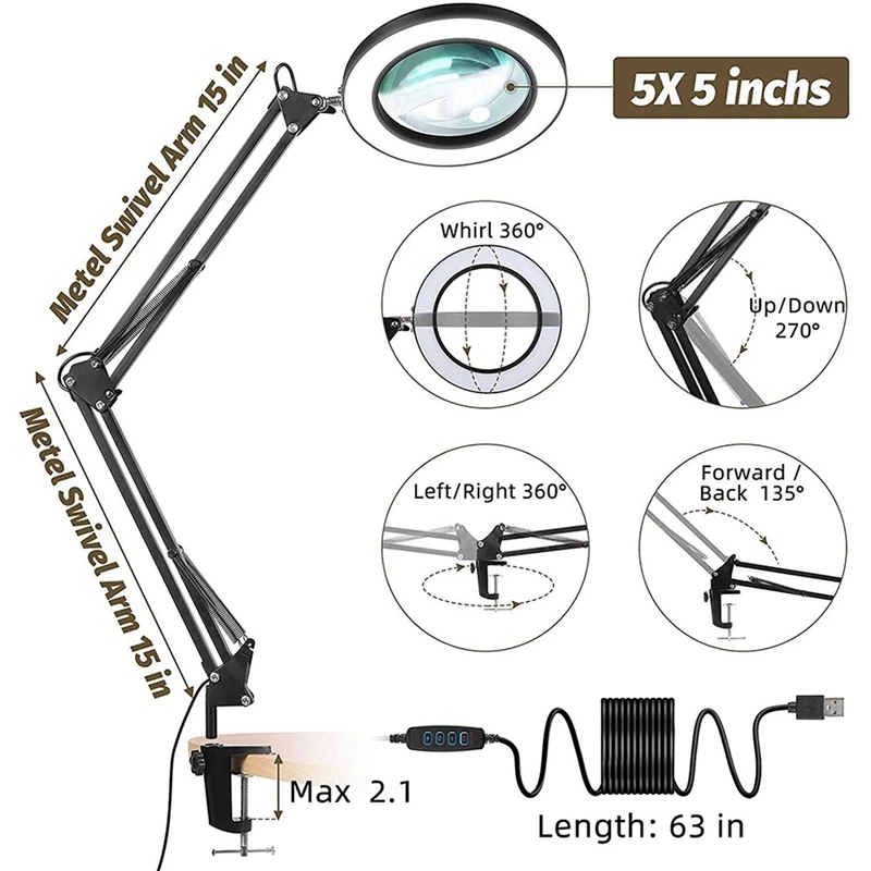 tbMVGmQsHere you can buy 2X Magnifying Glass With Light And Bracket,3 Color Modes Stepless Dimmable LED Desk Lamp, Used For Reading And Repairing with free delivery to your post office.