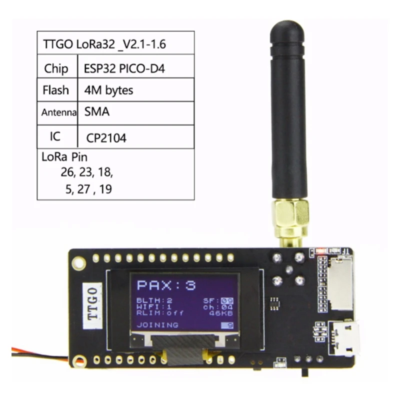 phXttaeyOЗдесь вы сможете купить 2X TTGO Lora32 V2.1 ESP32 Bluetooth WIFI Wireless Module 433Mhz 0.96 Inch Bluetooth Wifi Wireless Module SMA IP5306 с бесплатной доставкой до вашего почтового отделения.
