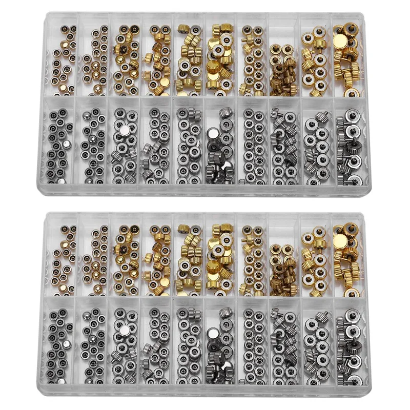 2X Waterproof Watch Crown Parts Replacement Assorted Gold & Silver Dome Flat Head Watch Repair Tool Kit For Watchmaker - Купить с бесплатной доставкой