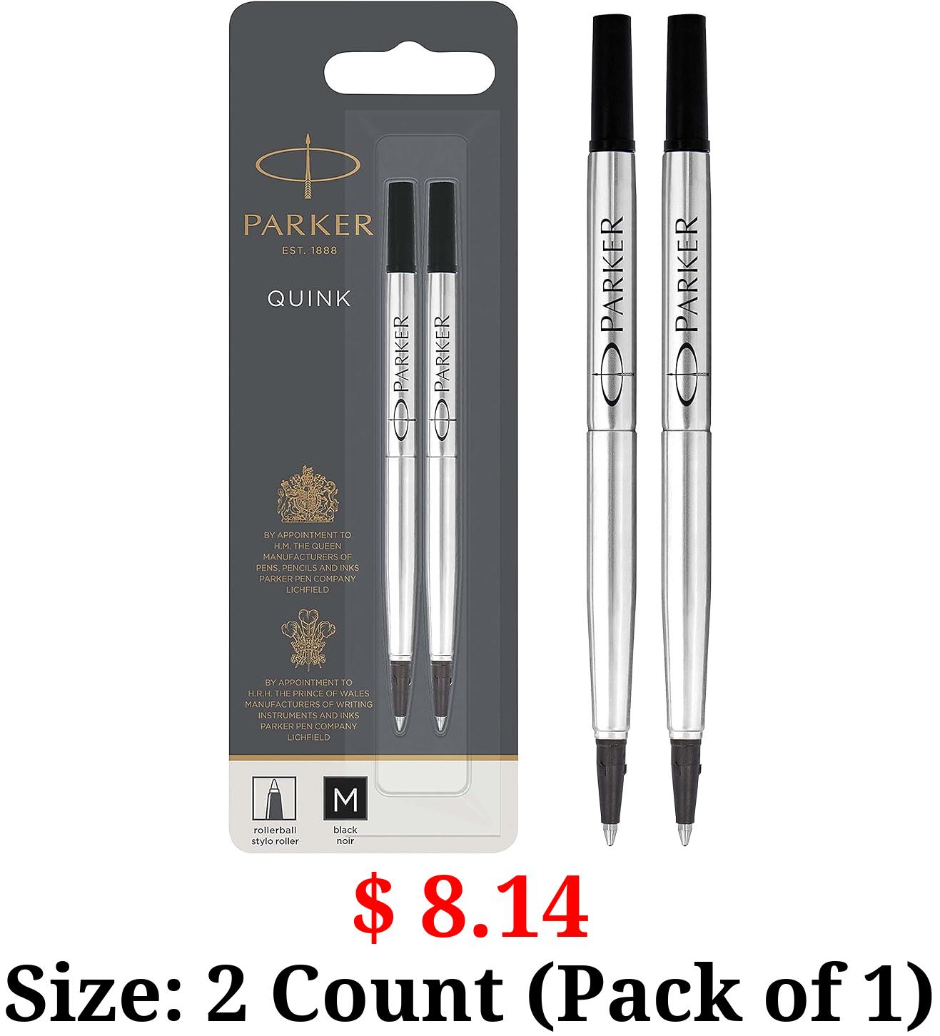 $ 8.14 Size: 2 Count (Pack of 1) Parker Rollerball Pen Refill Medium Nib Black, Pack of 2