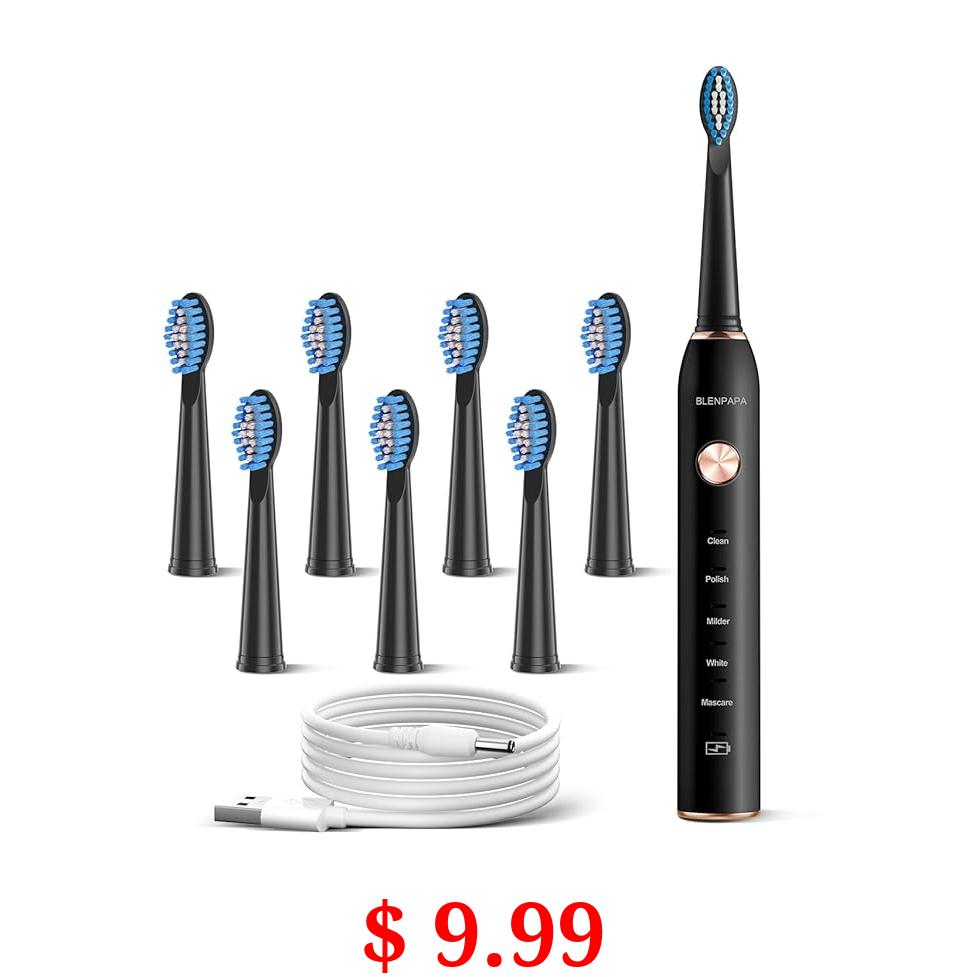 $ 9.99 Blenpapa High Vibration 38000VPM Sonic Electric Toothbrush for Adults with Timer Dupont Brush Heads Ultra Whitening 5-Modes - White