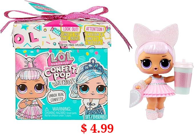 $ 4.99 L.O.L. Surprise! Confetti Pop Birthday - with Collectible Doll, 8 Surprises, Confetti Surprise unboxing, Accessories, Limited Edition Doll, Present Box Packaging- Great Gift for Girls Age 4+