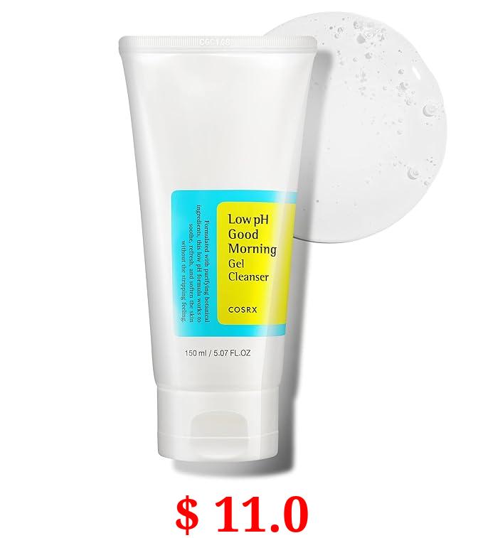 $ 11.0 COSRX Low pH Good Morning Gel Cleanser, Daily Mild Face Cleanser for Sensitive Skin, PH Balancing, Anti Breakouts, No Parabens, No Sulfates, Korean Skincare (5.07 fl.oz/150ml)