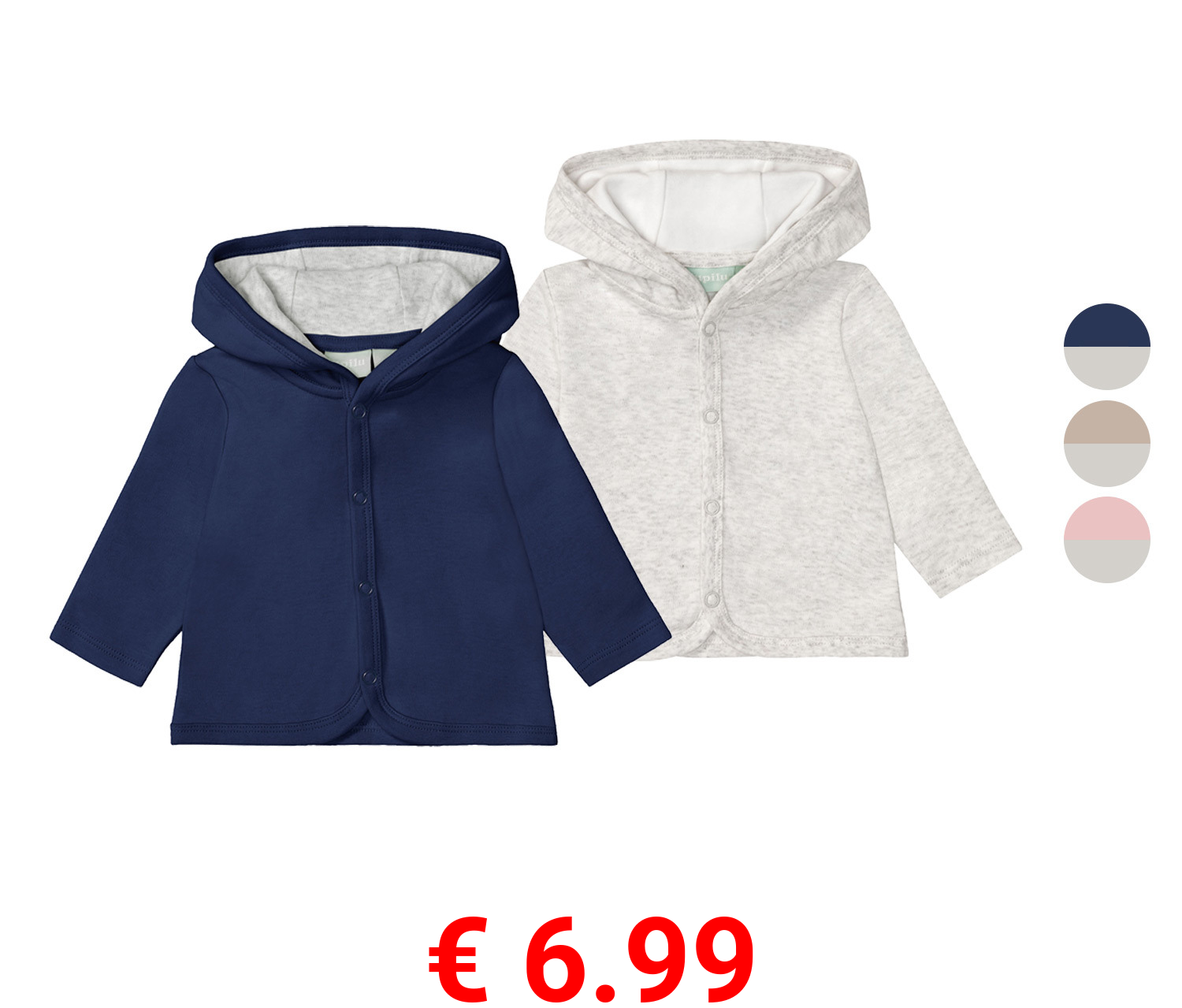 € 6.99 lupilu® Baby Sweatjacke, 2 Stück, aus reiner Bio-Baumwolle