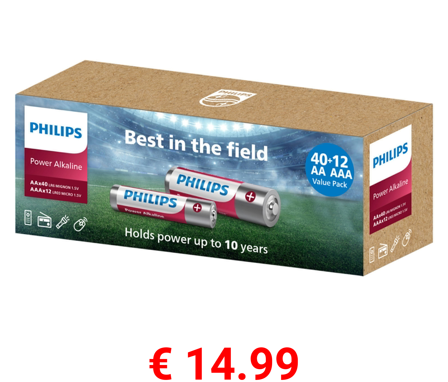 € 14.99 PHILIPS Power Alkaline Batterien, 52 Stück