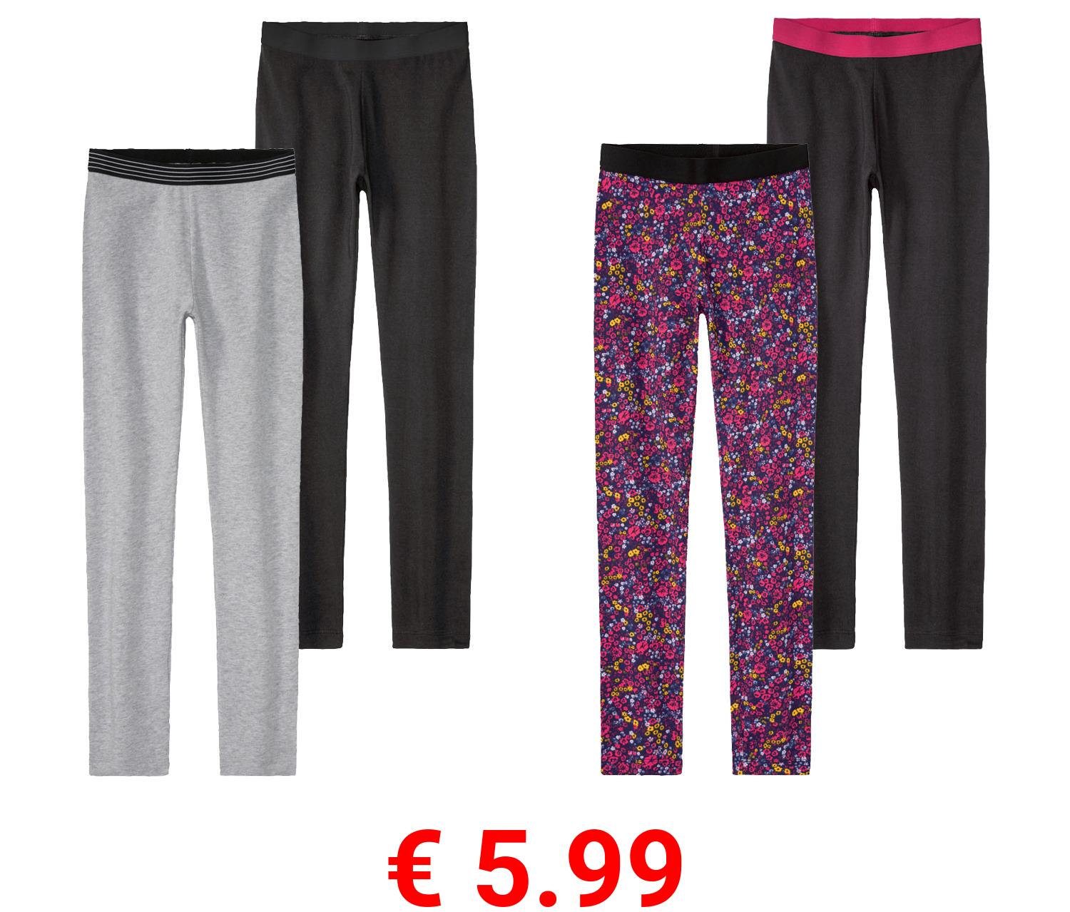 € 5.99 pepperts!® Mädchen Leggings, 2 Stück, mit hohem Baumwollanteil