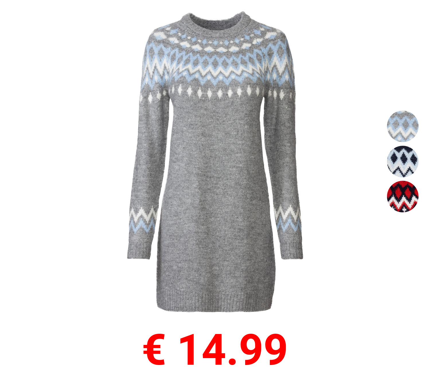 € 14.99 esmara® Damen Strickkleid, Muster im im Norwegerstil