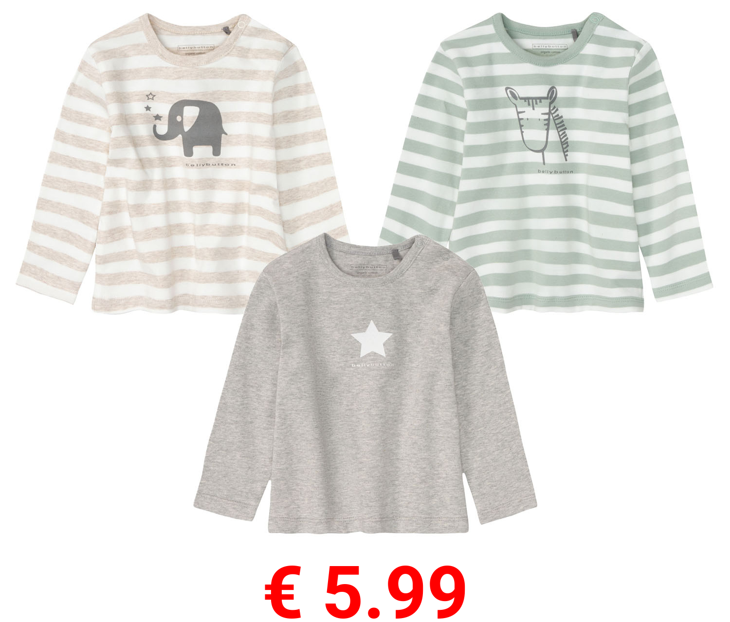 € 5.99 bellybutton Baby Langarmshirt, mit hohem Bio-Baumwollanteil
