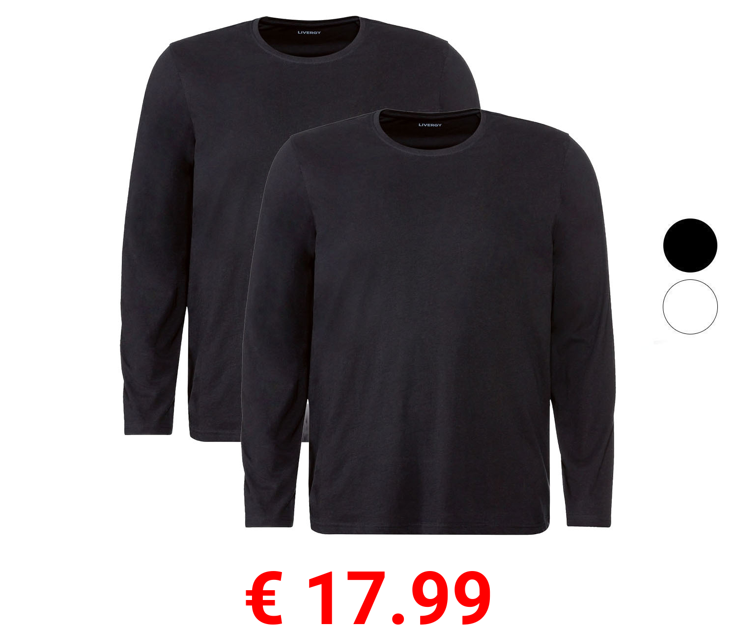 € 17.99 LIVERGY® Herren Langarmshirts, 2 Stück, aus reiner Baumwolle
