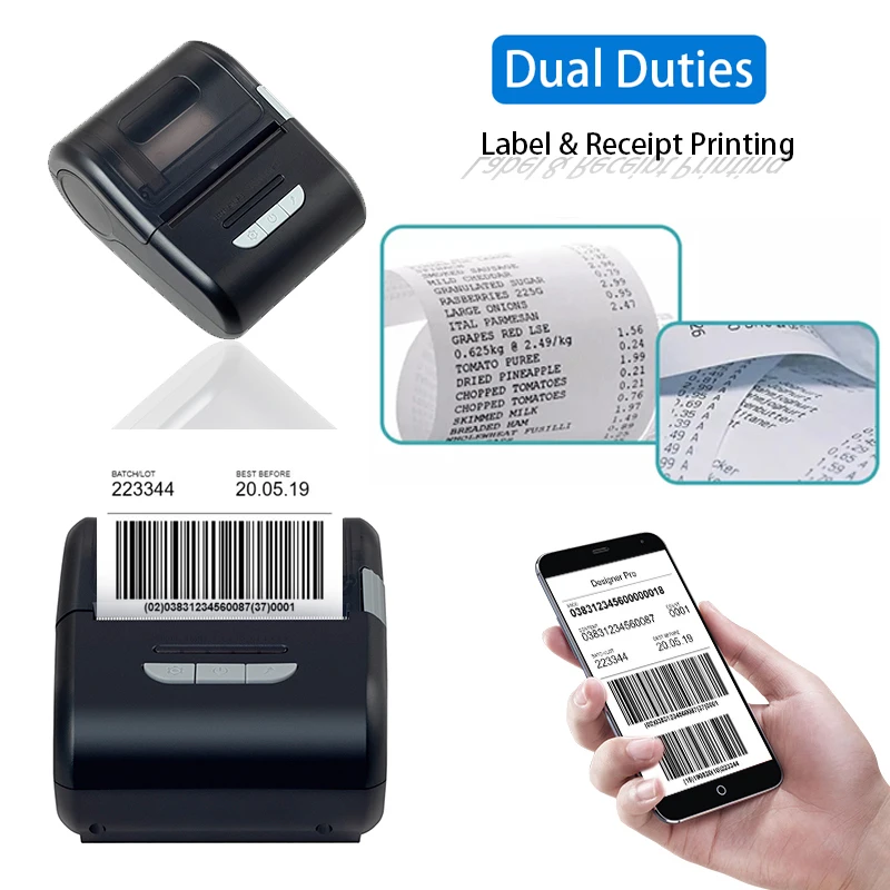 Receipt printer information is on pages .。 2 .Open our "MHTreceipt"/ "MLabel" app, post receipt , : Thermal Label Printer Bluetooth USB iOS Android Windows bar Code Label Maker Printer 58 mm 2 inch : Electronics . PORTABLE HANDHELD PRINTER : Meihengtong Bluetooth thermal printer size of a palm . bar code, then pair and connect it .