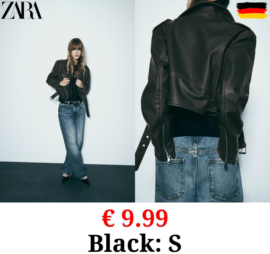€ 9.99 WORN EFFECT CROPPED LEATHER EFFECT BIKER JACKET