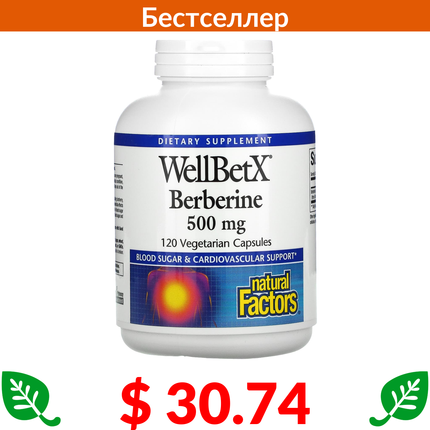 $ 30.74 Natural Factors, WellBetX, берберин, 500 мг, 120 вегетарианских капсул