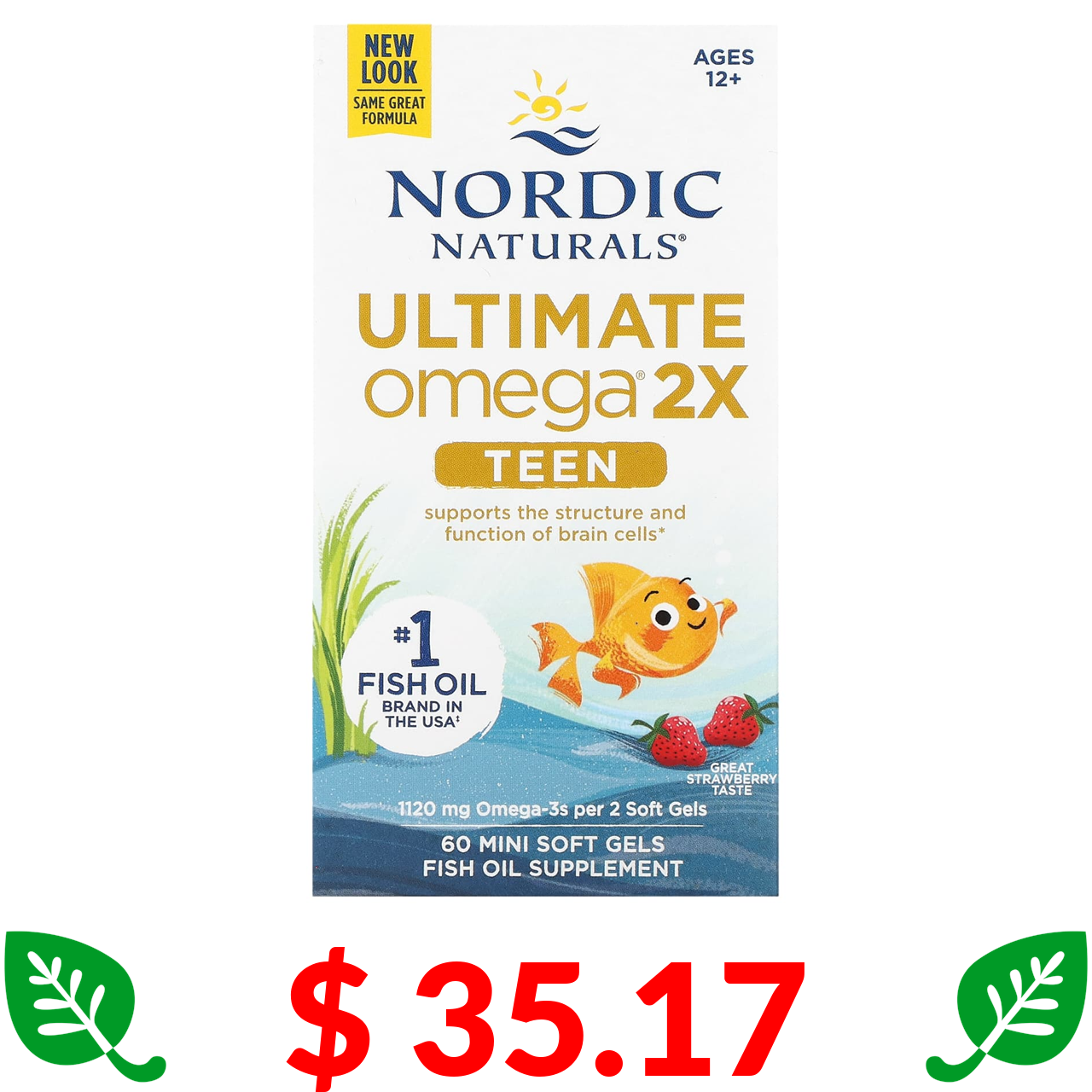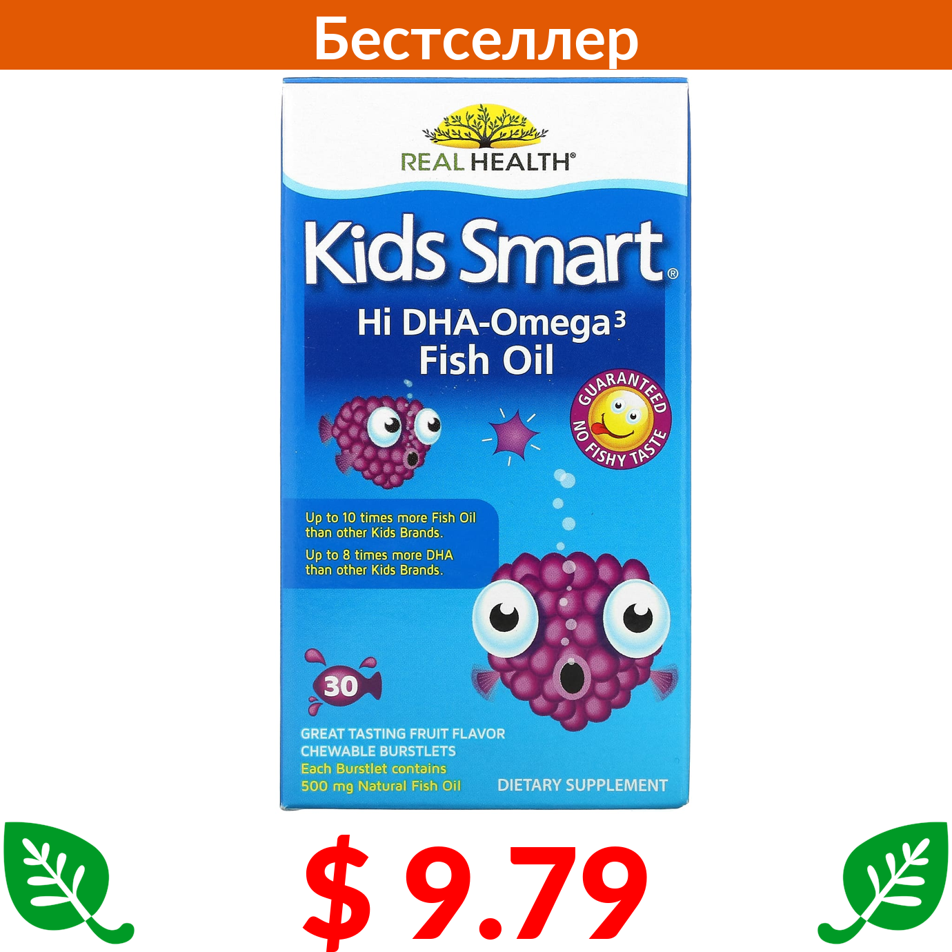$ 10.52 Нордик Натуралс, Daily Omega Kids, со вкусом натуральных фруктов, 30 капсул