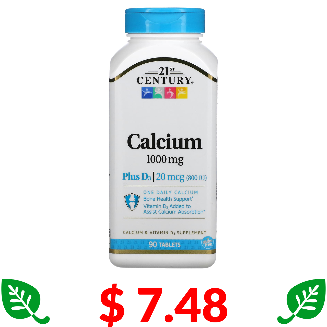 $ 7.48 21st Century, кальций с витамином D3, 1000 мг, 90 таблеток