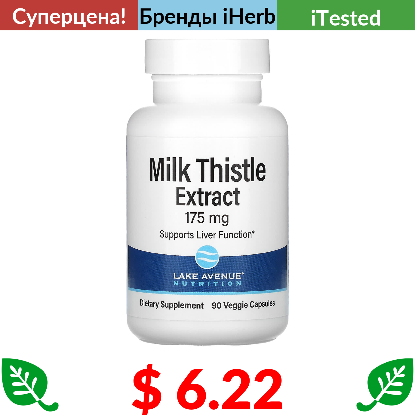 $ 6.22 Lake Avenue Nutrition, экстракт расторопши, 175 мг, 90 растительных капсул