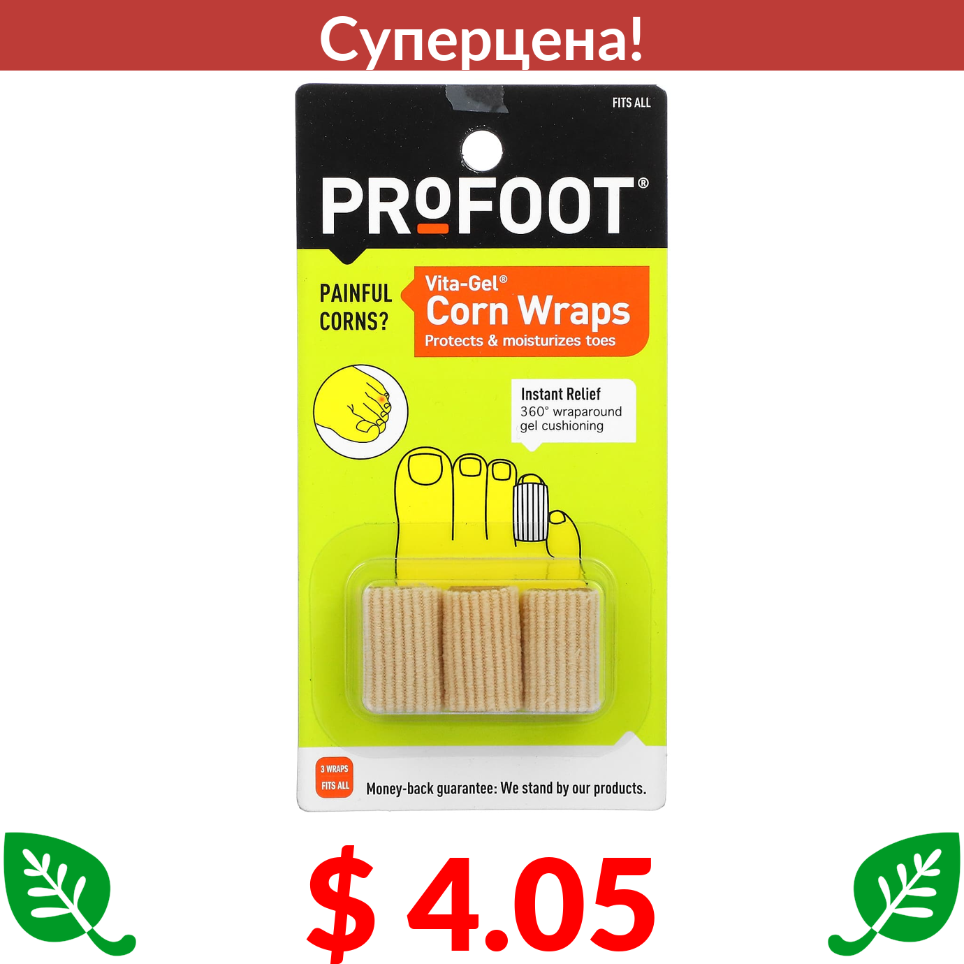 $ 4.05 Profoot, Vita-Gel кукурузные обертывания, универсальный размер, 3 упаковки