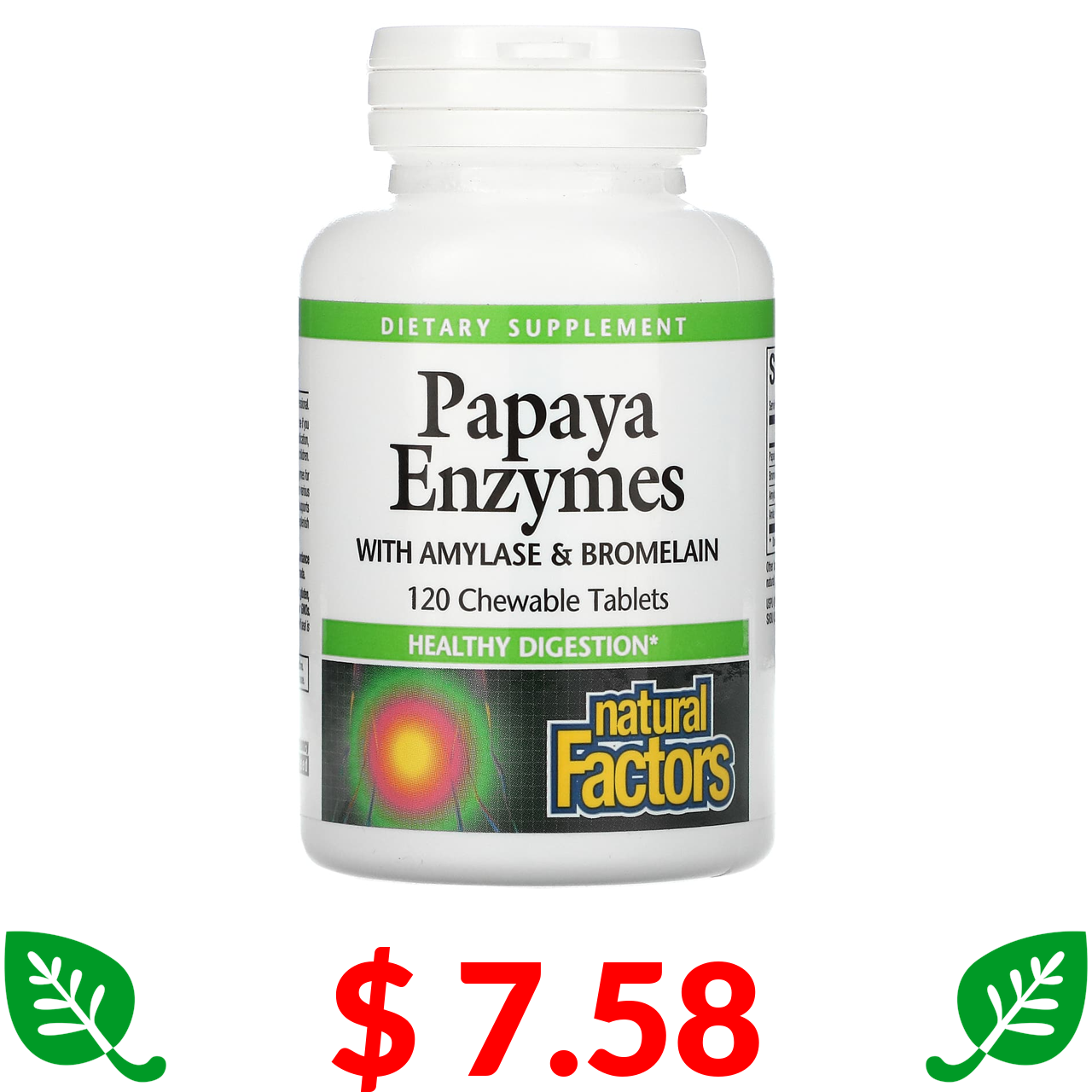 $ 7.58 Natural Factors, ферменты папайи с амилазой и бромелаином, 120 жевательных таблеток