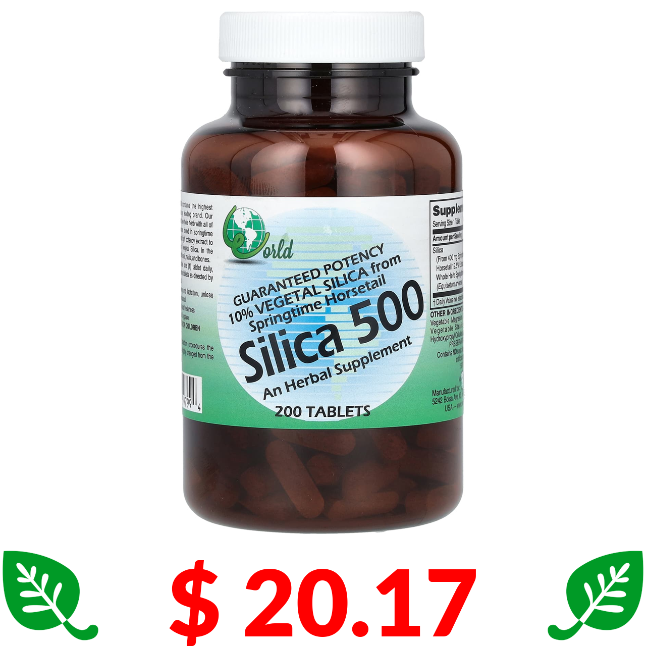 $ 20.17 Ворлд Органик, Silica 500, 200 таблеток