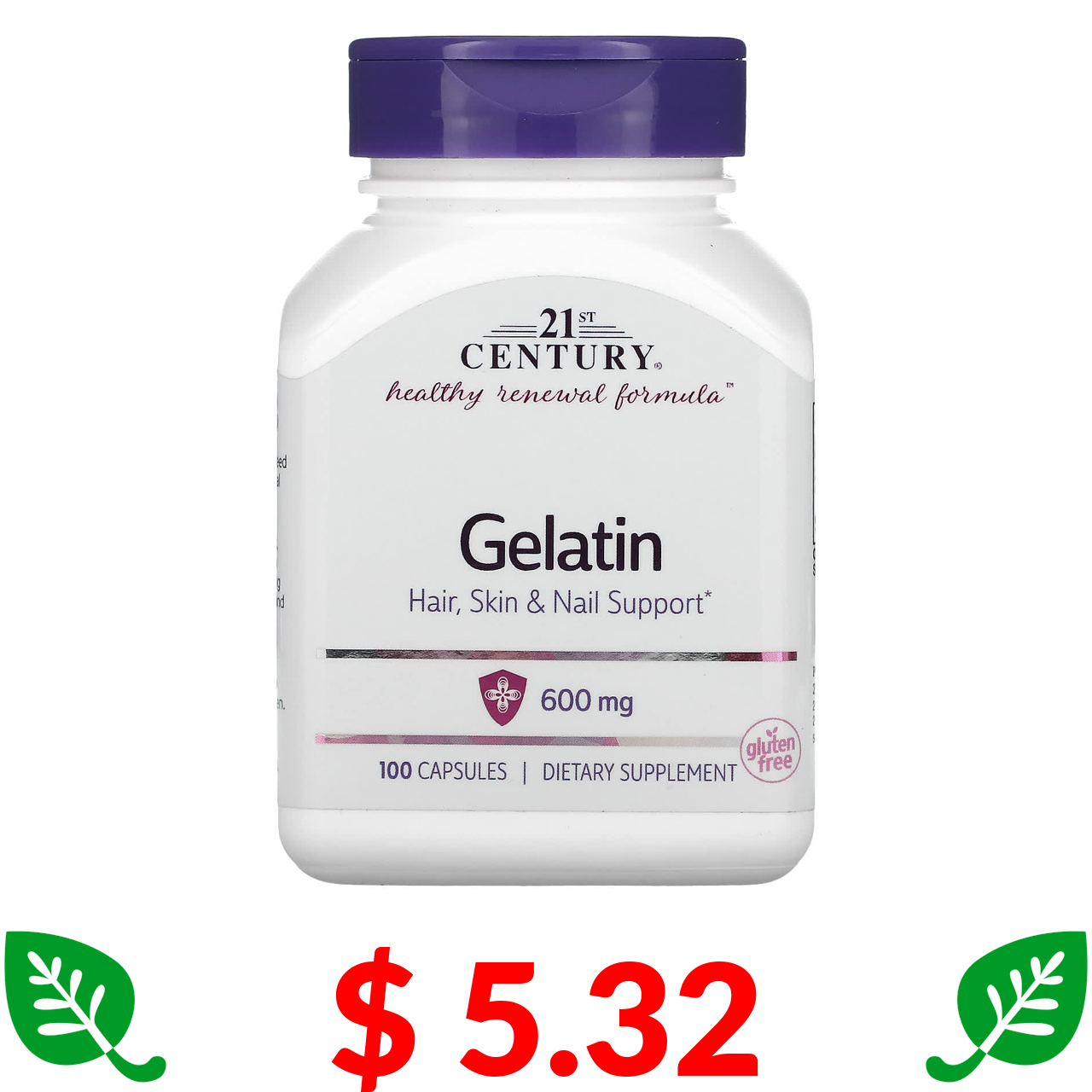 $ 5.32 21st Century, желатин, 600 мг, 100 капсул