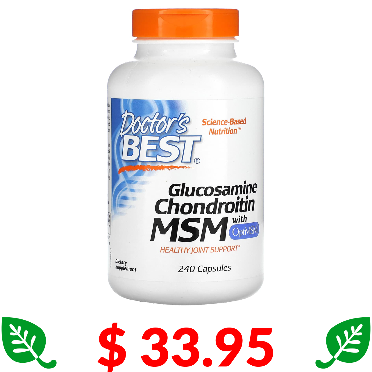 $ 33.95 Докторс Бэст, глюкозамин, хондроитин и МСМ с OptiMSM, 240 вегетарианских капсул