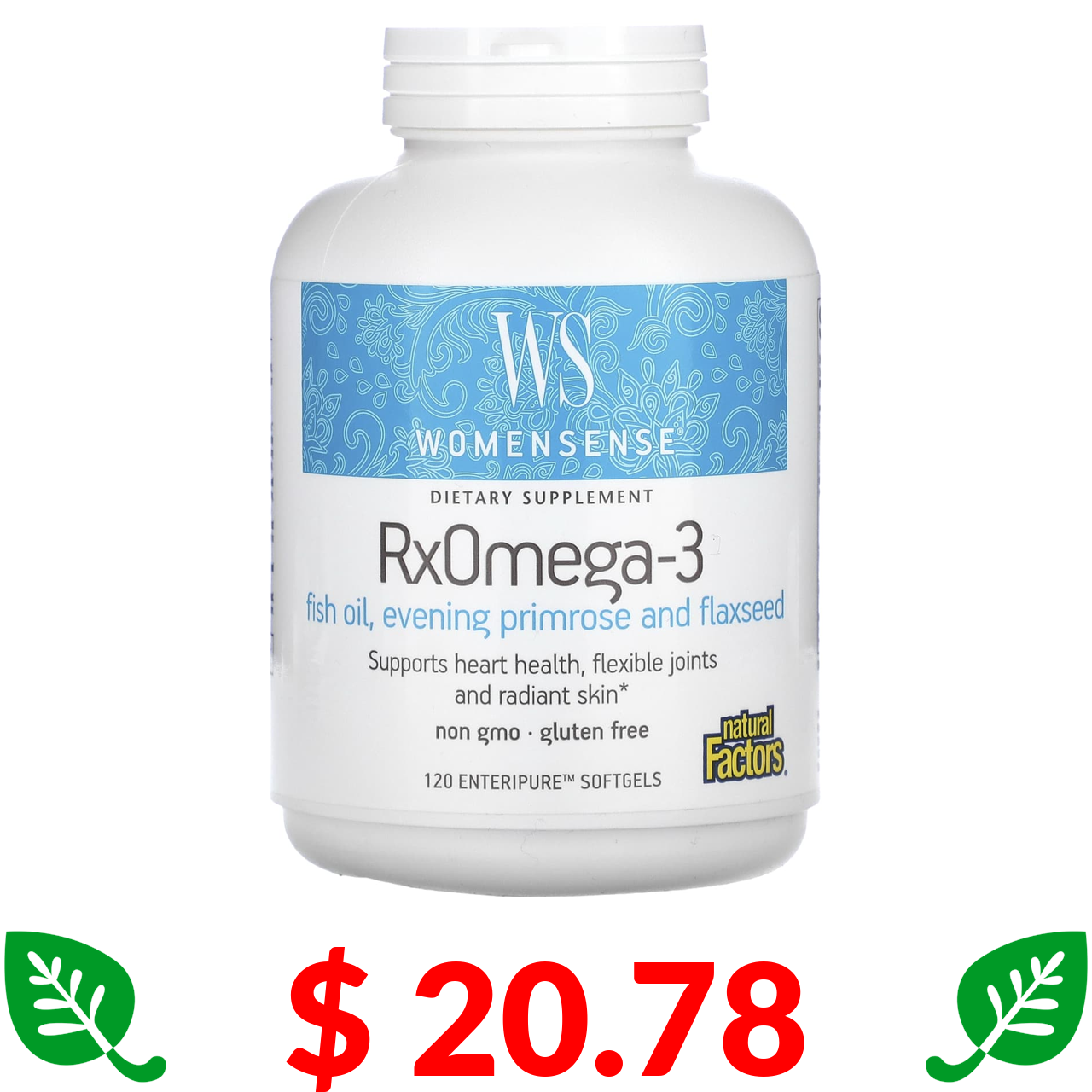 $ 20.78 Natural Factors, WomenSense, RxOmega-3, 120 м’яких таблеток Enteripure