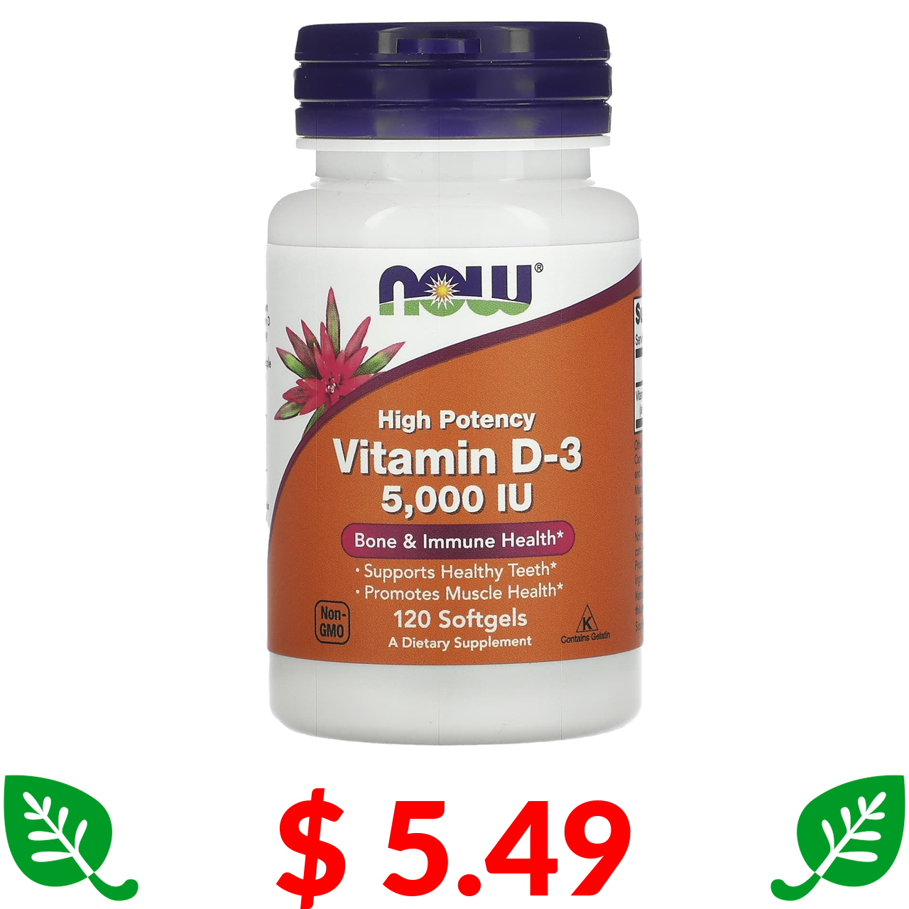 $ 5.49 Now Foods, високоефективний вітамін D3, 5000 МО, 120 капсул