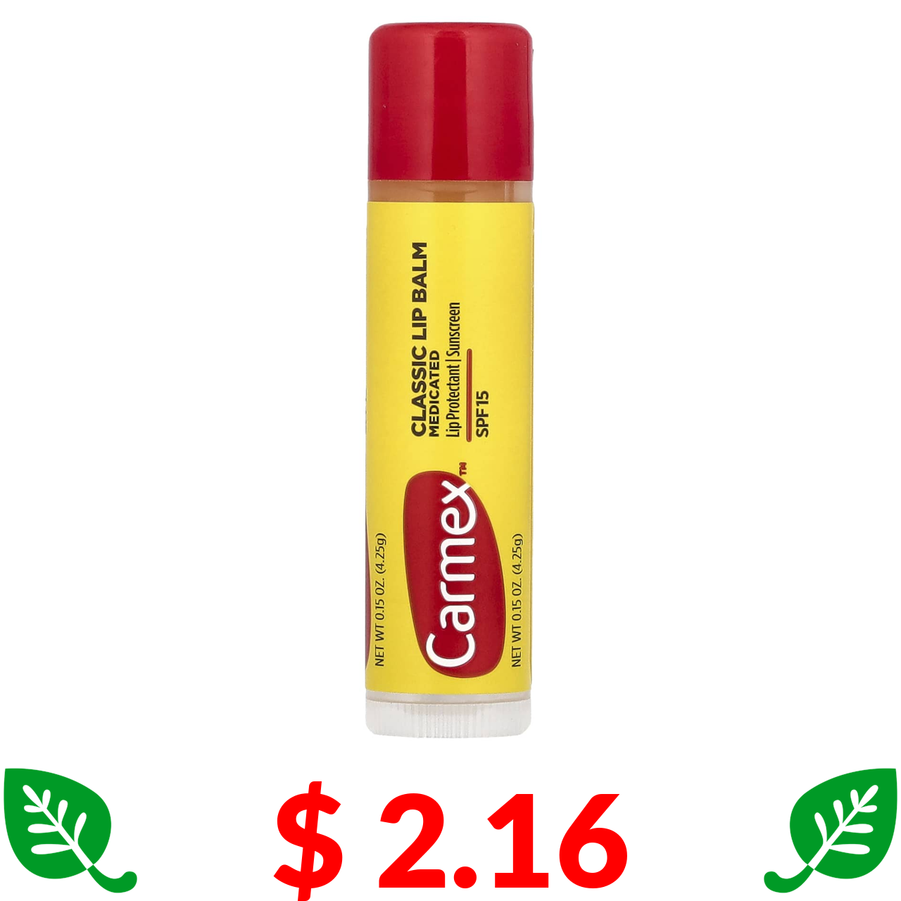 $ 2.16 Carmex, класичний бальзам для губ, лікувальний, SPF 15, 4,25 г (15 унції)