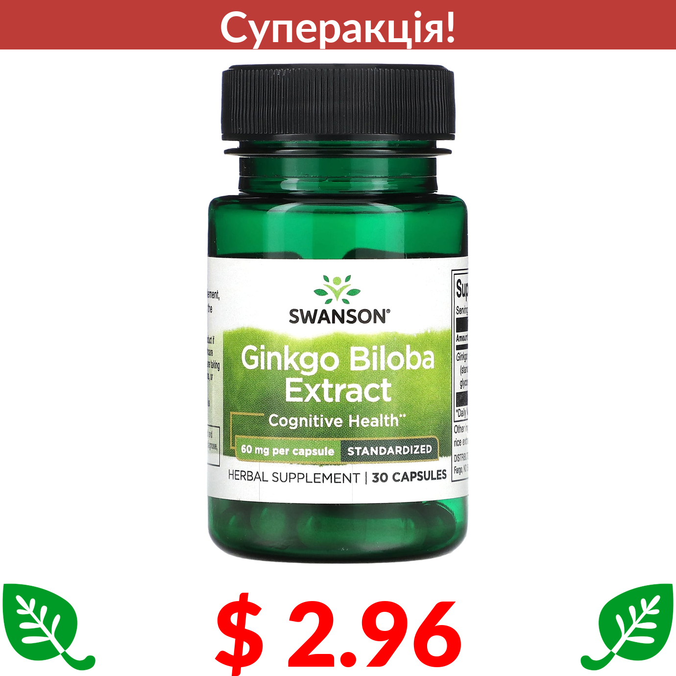 $ 2.96 Swanson, стандартизований екстракт гінкго білоба, 60 мг, 30 капсул