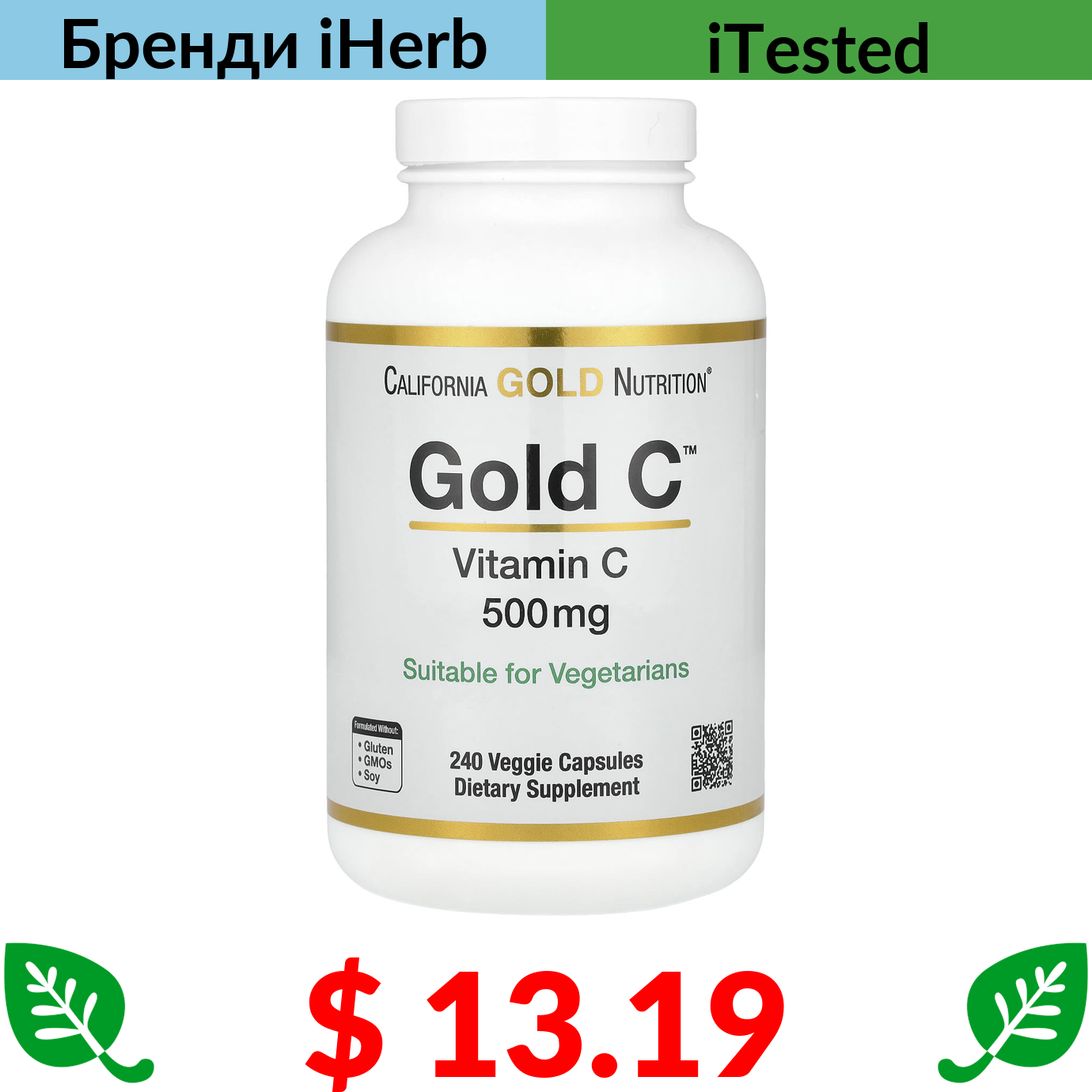 $ 13.19 California Gold Nutrition, Gold C, вітамін С, 500 мг, 240 вегетаріанських капсул