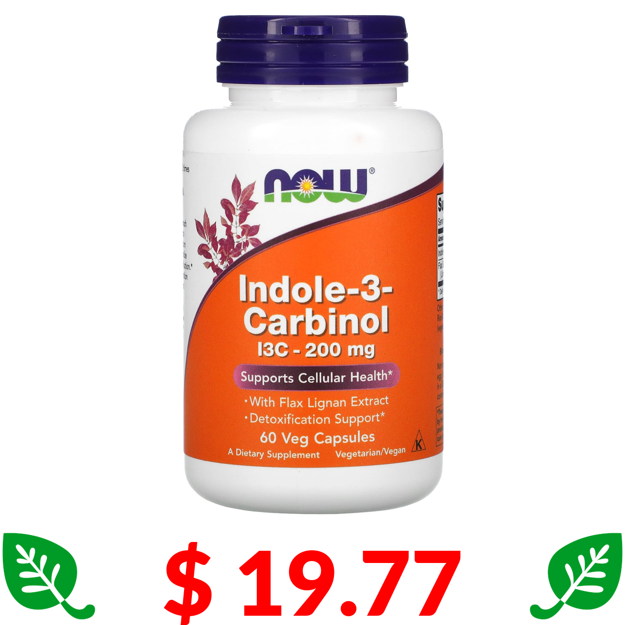 $ 19.77 Now Foods, індол-3-карбінол, 200 мг, 60 вегетаріанських капсул