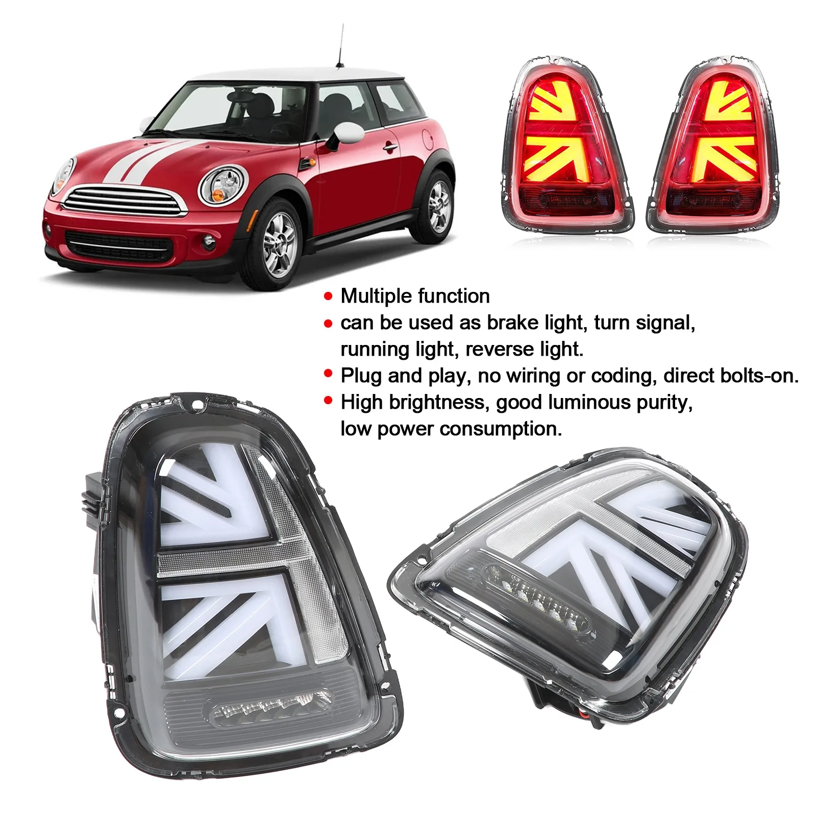 2pcs Car LED Tail Lights Union Jack Clear Lens Rear Brake Lights Replacement For Mini Cooper R56 R57 2007‑2013 - Купить с бесплатной доставкой