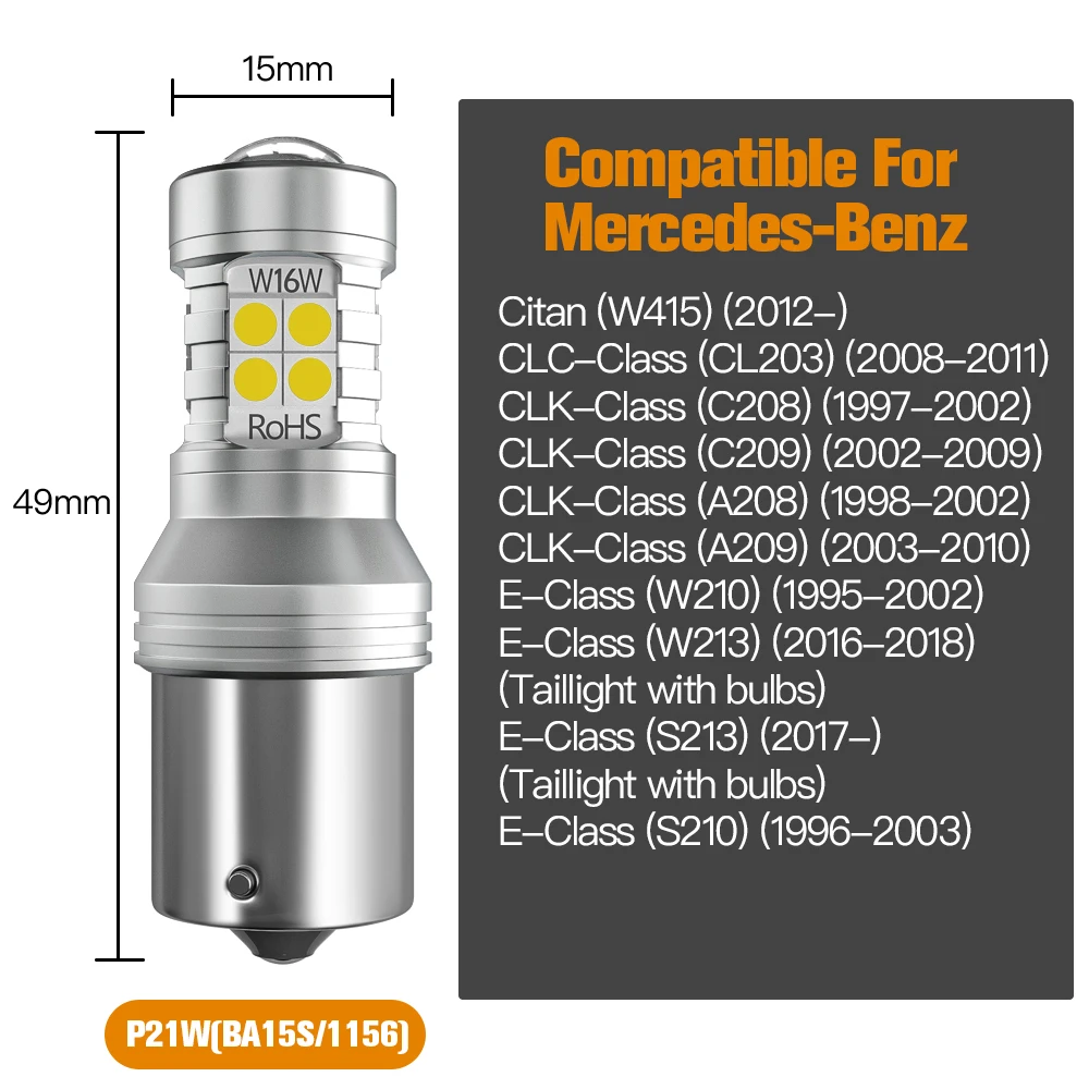 "2pcs LED Reverse Light P21W BA15S Canbus For Mercedes Benz W415 CLC CLK E Class CL203 C208 C209 A208 A209 W210 W213 S213 S210" * Buy Now Just For 14$