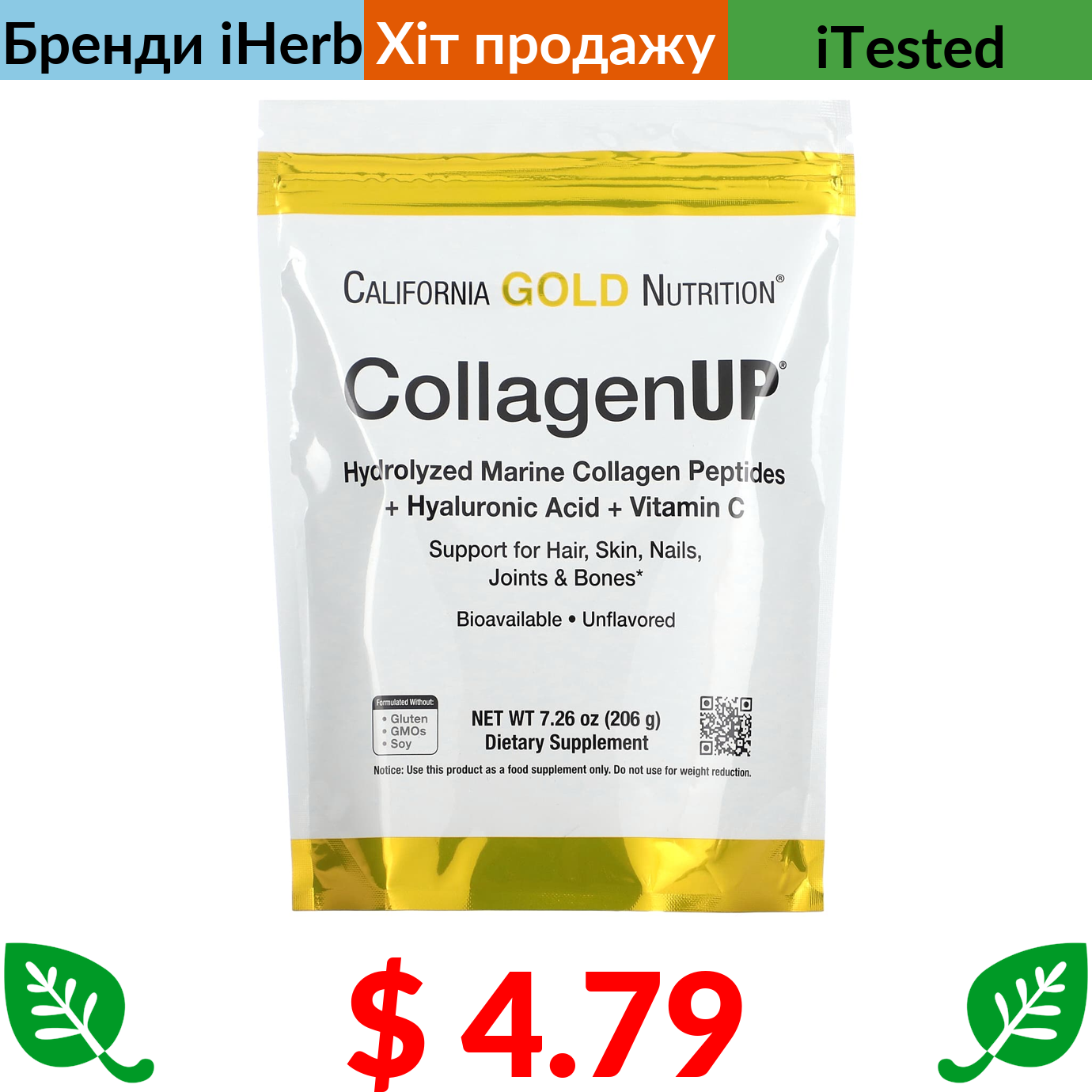$ 8.64 California Gold Nutrition, біотин, 10000 мкг, 90 вегетаріанських капсул