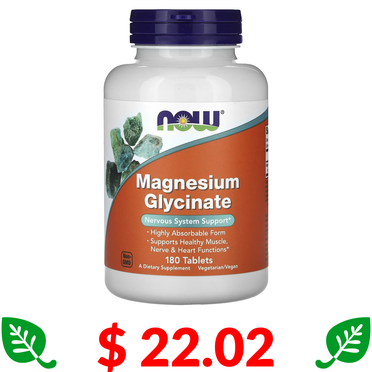 $ 22.02 Now Foods, гліцинат магнію, 180 таблеток