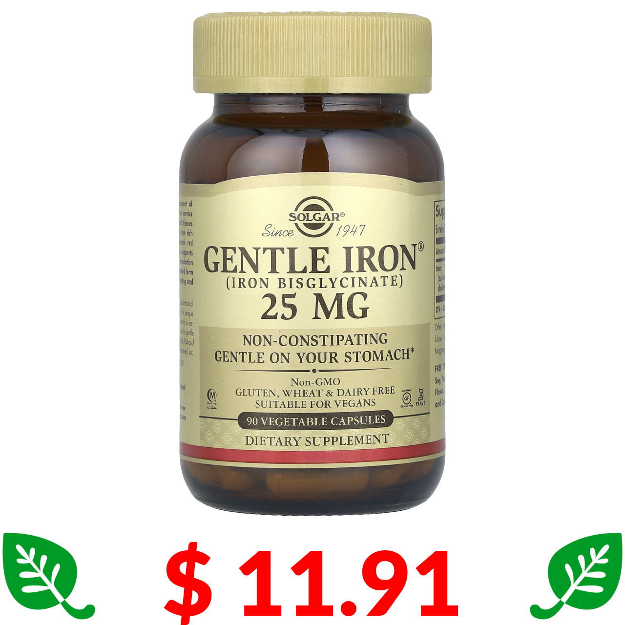 $ 11.91 Solgar, Gentle Iron, добавка з залізом, 25 мг, 90 рослинних капсул