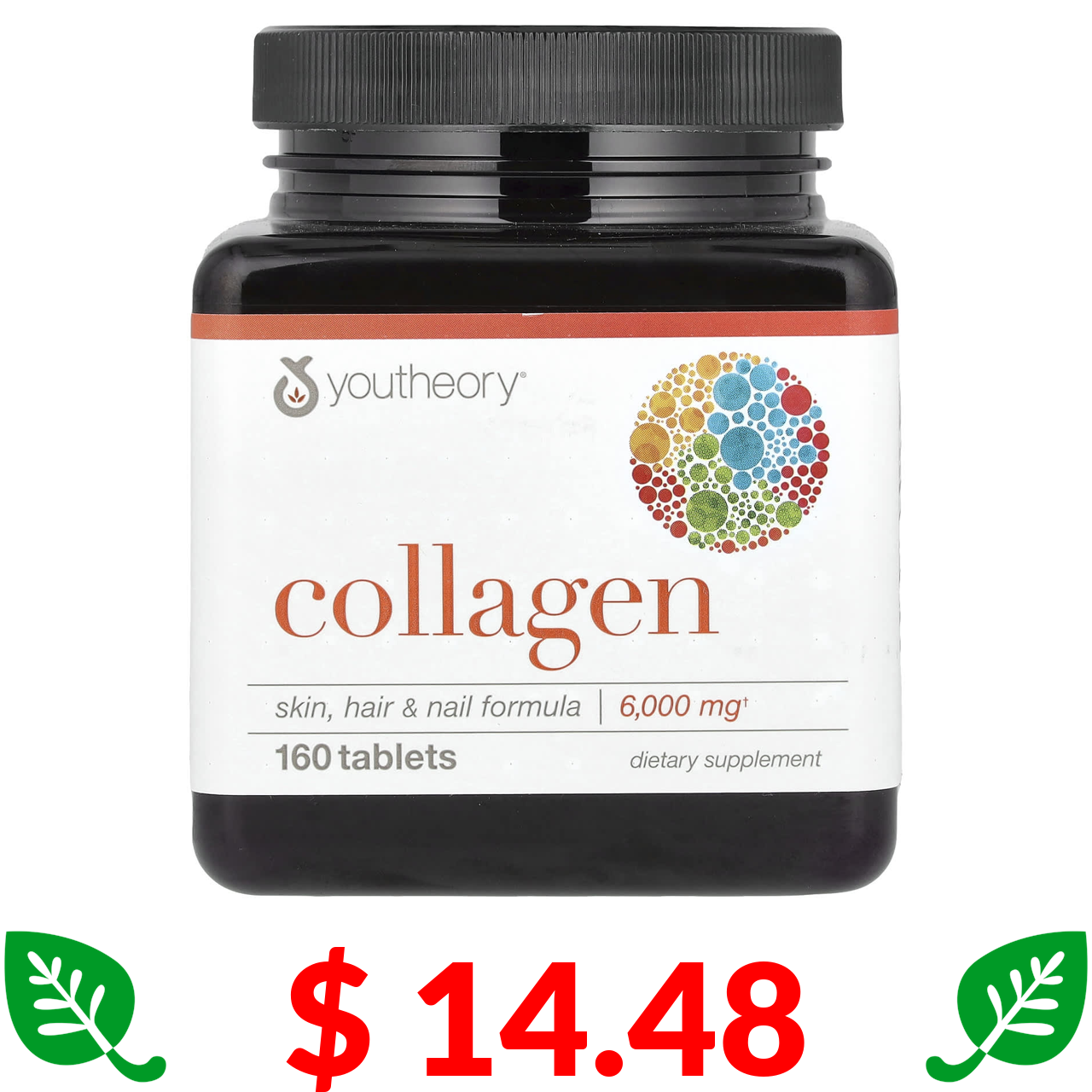 $ 14.48 Youtheory, колаген, 6000 мг, 160 таблеток (1000 мг у таблетці)