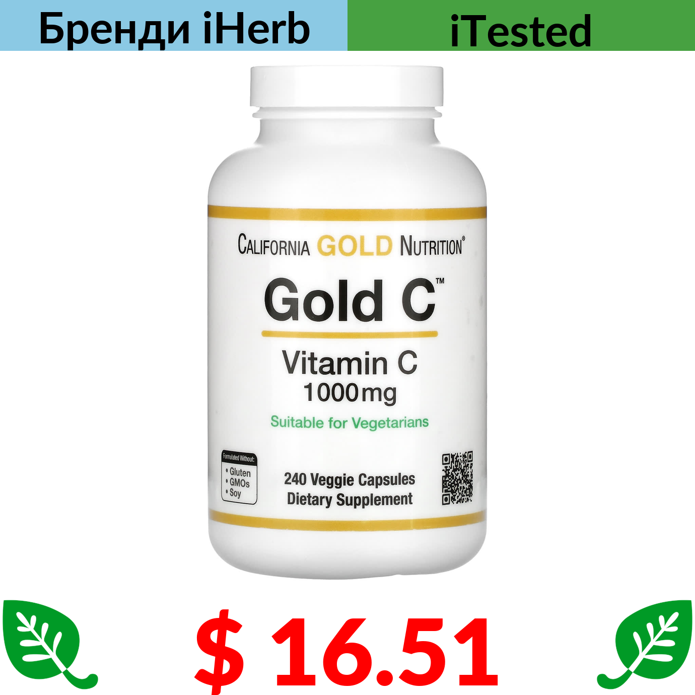 $ 16.51 California Gold Nutrition, Gold C, вітамін C класу USP, 1000 мг, 240 вегетаріанських капсул