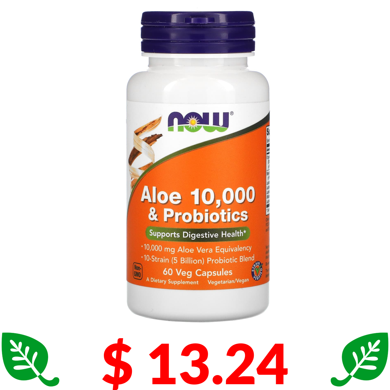 $ 13.24 Now Foods, алое 10 000 з пробіотиками, 60 вегетаріанських капсул