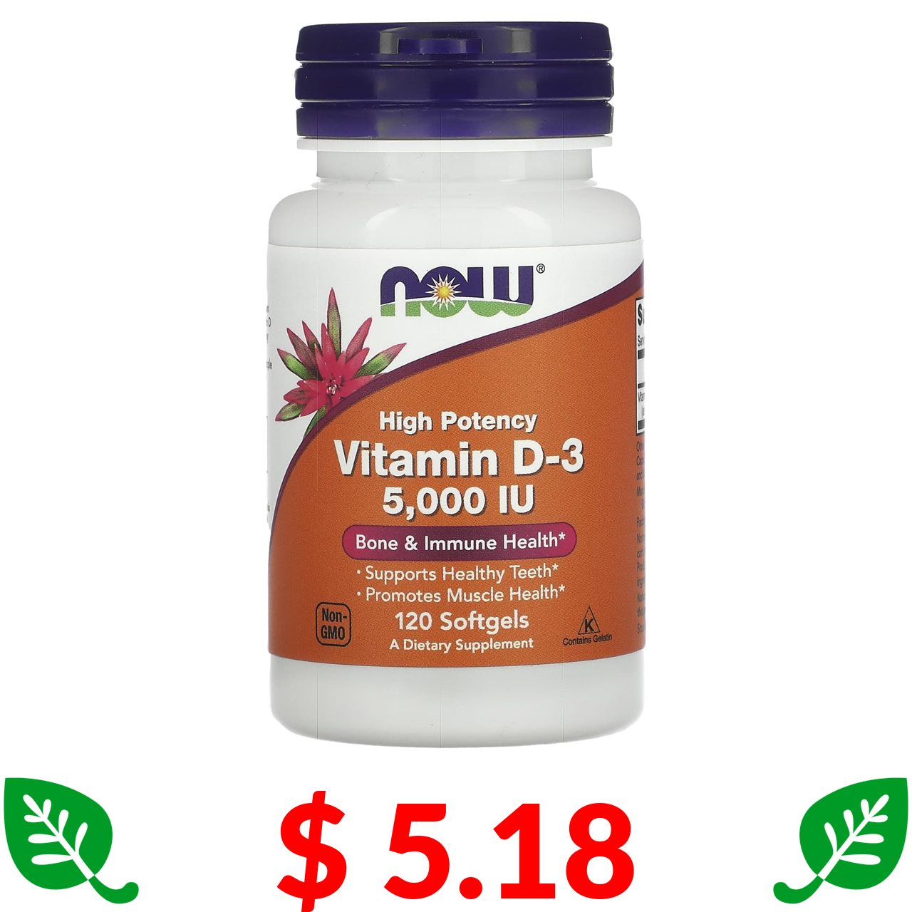 $ 5.18 Now Foods, високоефективний вітамін D3, 5000 МО, 120 капсул